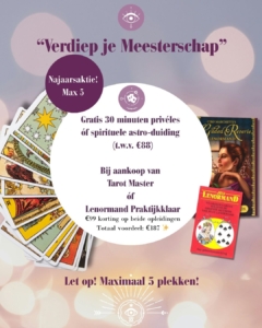 In deze unieke live training via Zoom leer je van Mireille van Rijn hoe je de basisprincipes van astrologie kunt koppelen aan Tarot en Lenormand, zodat je diepere inzichten en krachtigere interpretaties kunt bieden tijdens je consultaties. Door de verbinding te maken tussen astrologie en kaartleggingen, krijg je nieuwe perspectieven die je lezingen naar een hoger plan brengen.