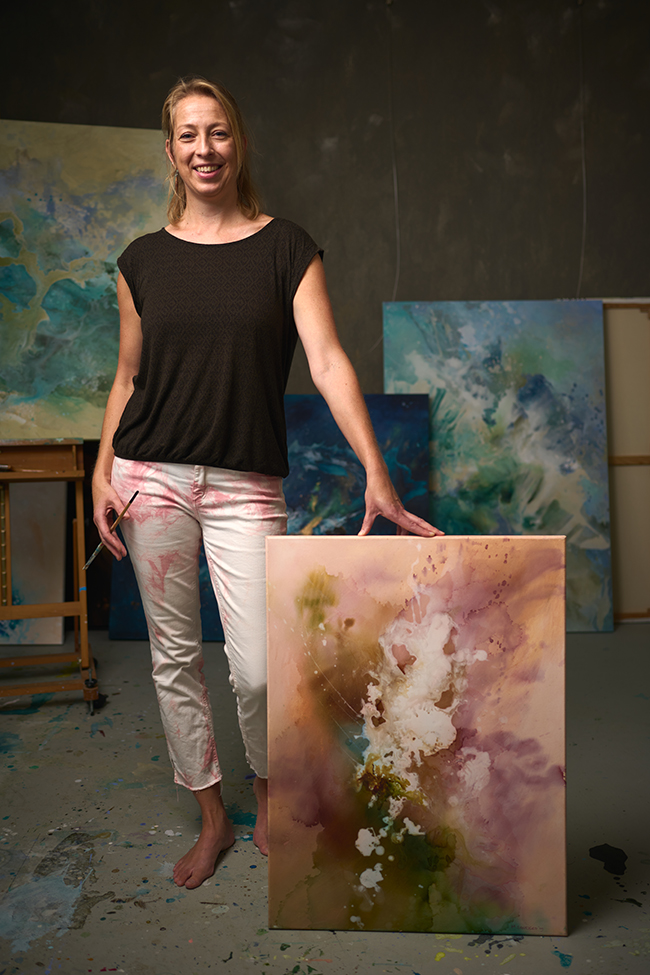 Miriam Sanders – beeldend kunstenares en visual storyteller. Zij maakt eigen pigmenten uit aarde, steen en planten en vertaalt verhalen en emoties naar kleur, textuur en lijn. Haar werk is pure alchemie: materie omvormen tot zielstaal.